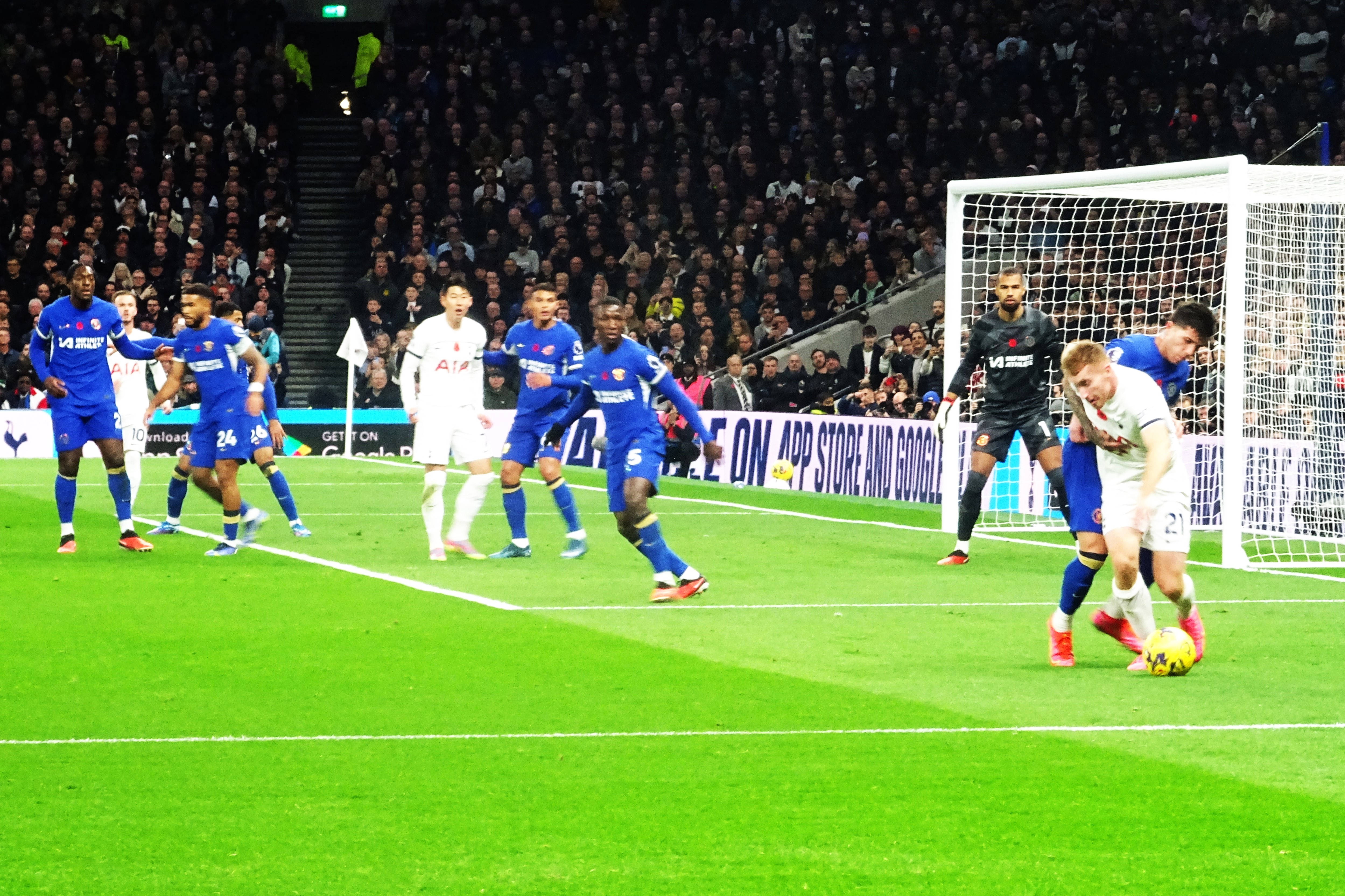 We were all cheering when Conor Gallagher sent a ball over for Nicolas Jackson to score – “he scored in the Cup game too, didn’t he?” – but our elation was stopped by the intervention of VAR. From my position up the other end of the stadium, it did seem like an offside.