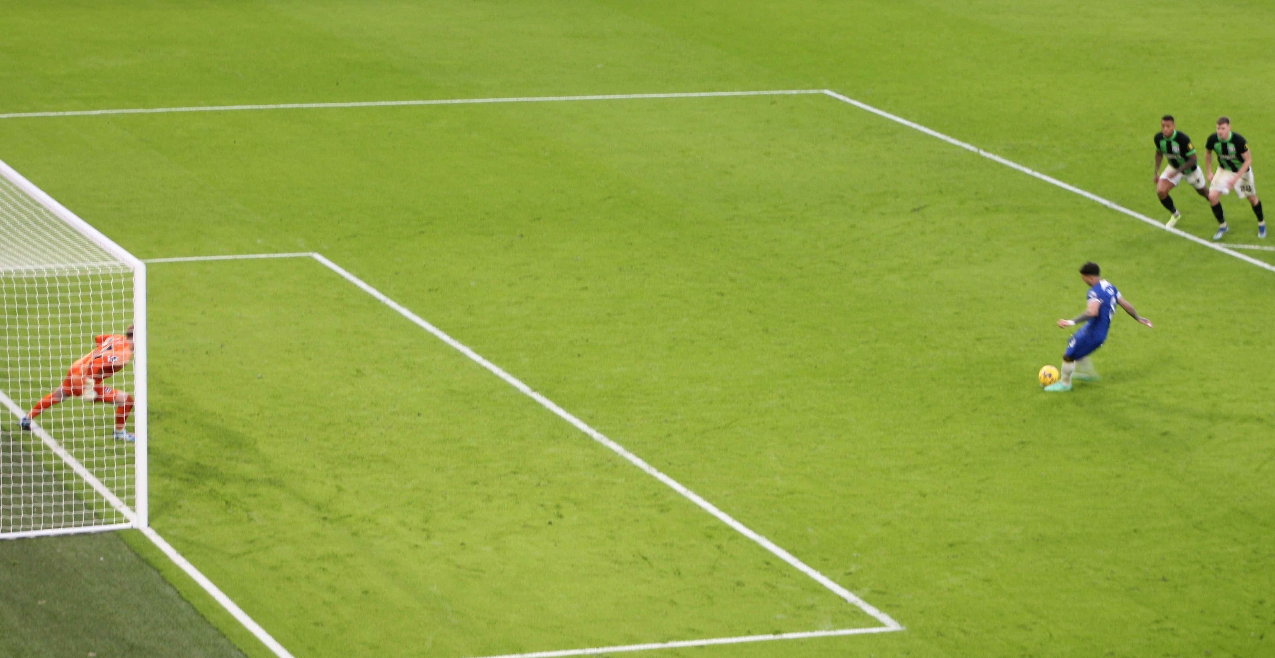 Of course. I remembered it now. The push by Badiashile. Yes. It looked unlawful. No shoulder charge, that.