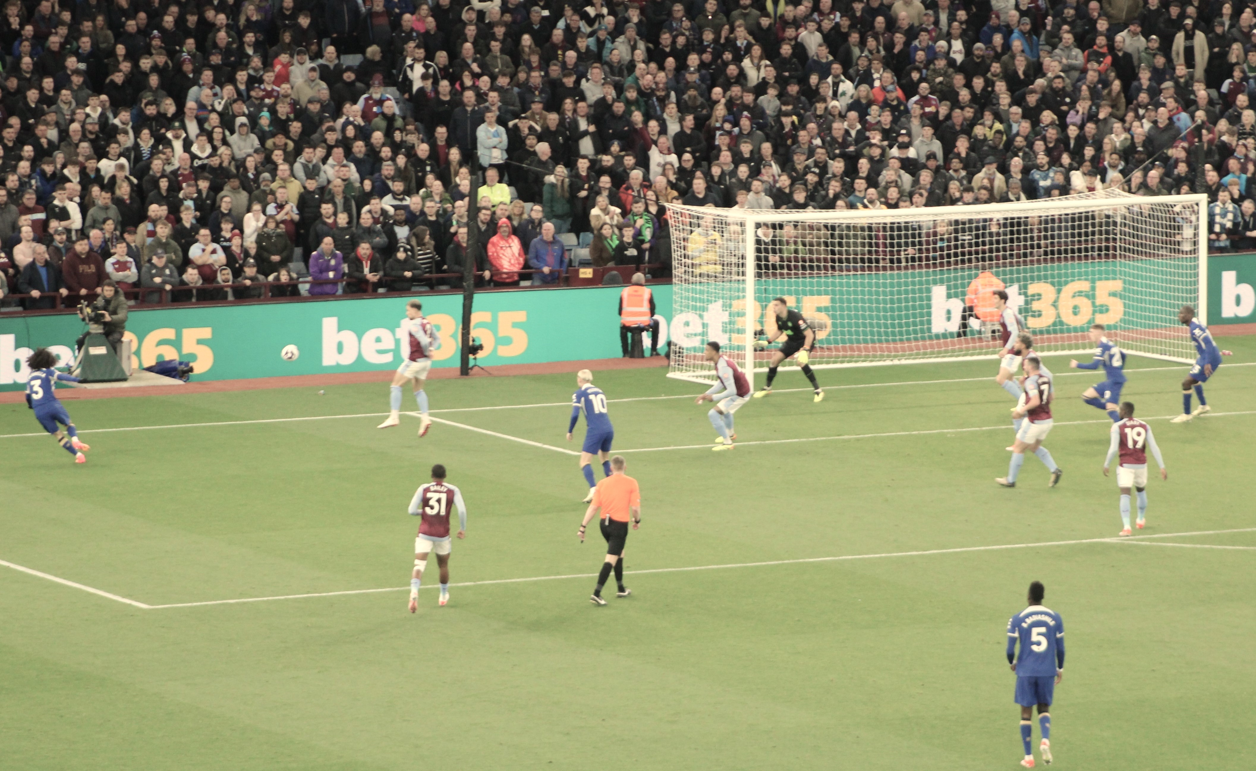 The Villa fans down to our right were cheering a second soon after, but we could see from our vantage place that Digne had only hit the side netting. Petrovic saved well from Ollie Watkins. We were struggling to find a foothold.